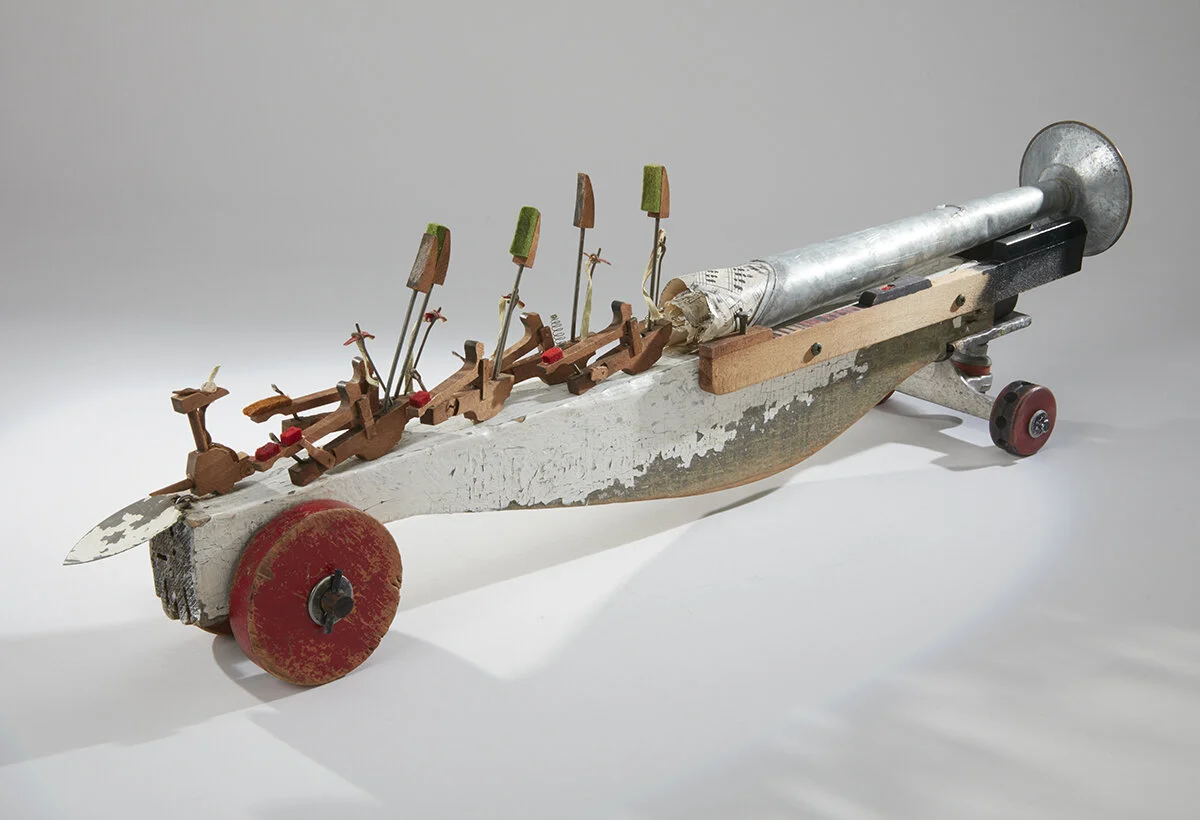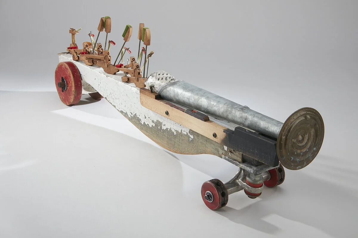 Where do you suppose they’re going? These pieces are created using handmade and found materials.